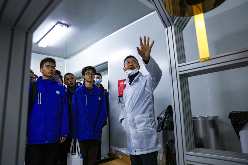 讲座结束后,志愿者带领同学们分批走进微纳光学公共平台、低温强磁光学实验室、激光技术与应用实验室、激光混沌应用实验室等科研实验室,近距离参观科学实验器械,实验室老师们运用通俗易懂的语言生动形象地讲解了相关专业知识原理,并对大家提出的问题逐一解答,为大家一层层揭开光电技术的神秘面纱。