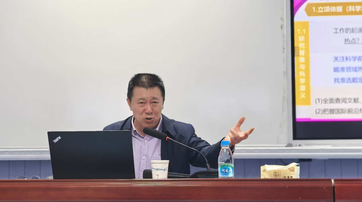 随后,柏连发教授围绕国家自然科学基金申报工作进行了全面深入的分享。他与参会的老师分享了科研工作的思路,强调了自然科学基金项目的前瞻性与引导性,并根据基金项目申报书的整体框架,系统介绍了基金申报的写作逻辑。结合自身多年的申报经验,他从选题策略、写作方法等多个角度,对如何撰写高质量的申报书进行了详细阐述,包括如何清晰阐述研究背景、意义、目标、内容、方法及预期成果等。