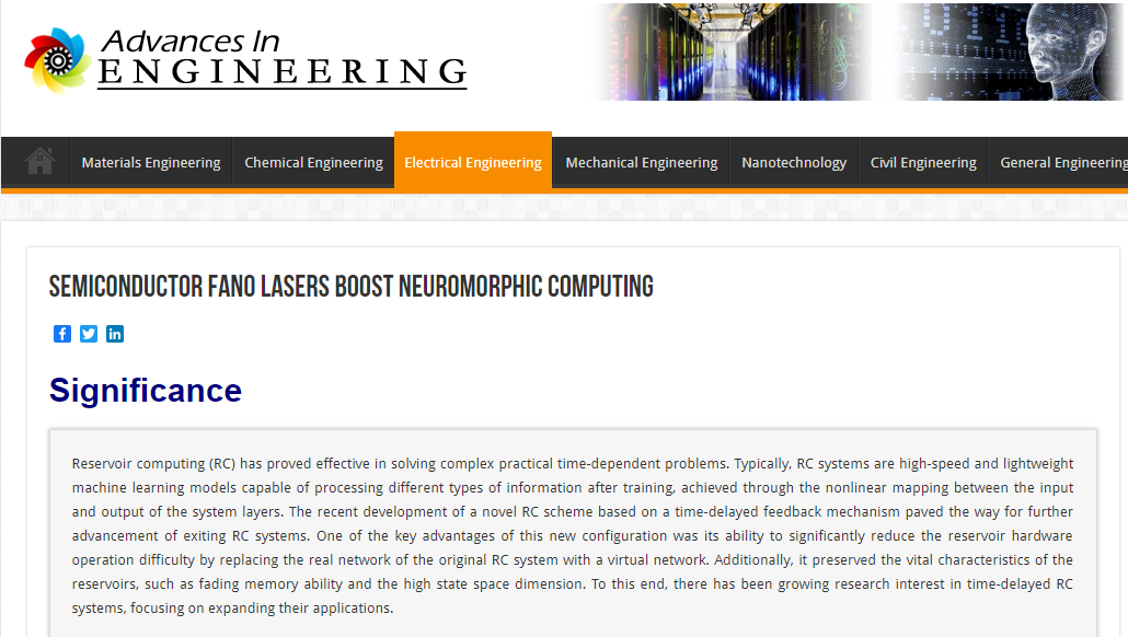 AIE报道链接:https://advanceseng.com/semiconductor-fano-lasers-boost-neuromorphic-computing/