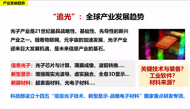 为进一步启发师生科学思维、拓宽学术视野、增进合作交流,积极引导师生将个人发展与社会和时代需求相结合,423日上午,光学技术与行政党支部、数码激光成像与显示教育部工程研究中心、教育部现代光学重点实验室和江苏省数码激光图像与新型印刷工程技术研究中心联合举办了产业前沿与职业发展主题系列报告的第一讲400余名师生通过腾讯会议平台参与此次活动。