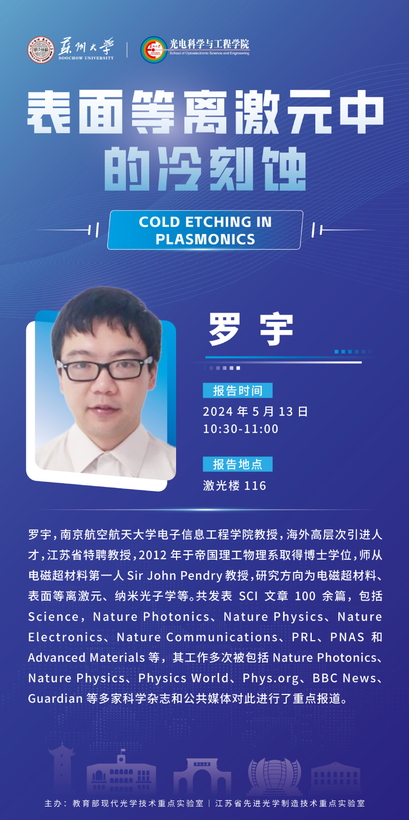 学术报告:表面等离激元中的冷刻蚀 -Cold etching in plasmonics