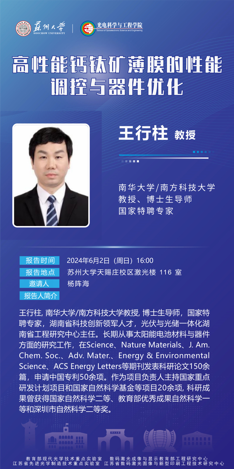 学术报告:高性能钙钛矿薄膜的性能调控与器件优化